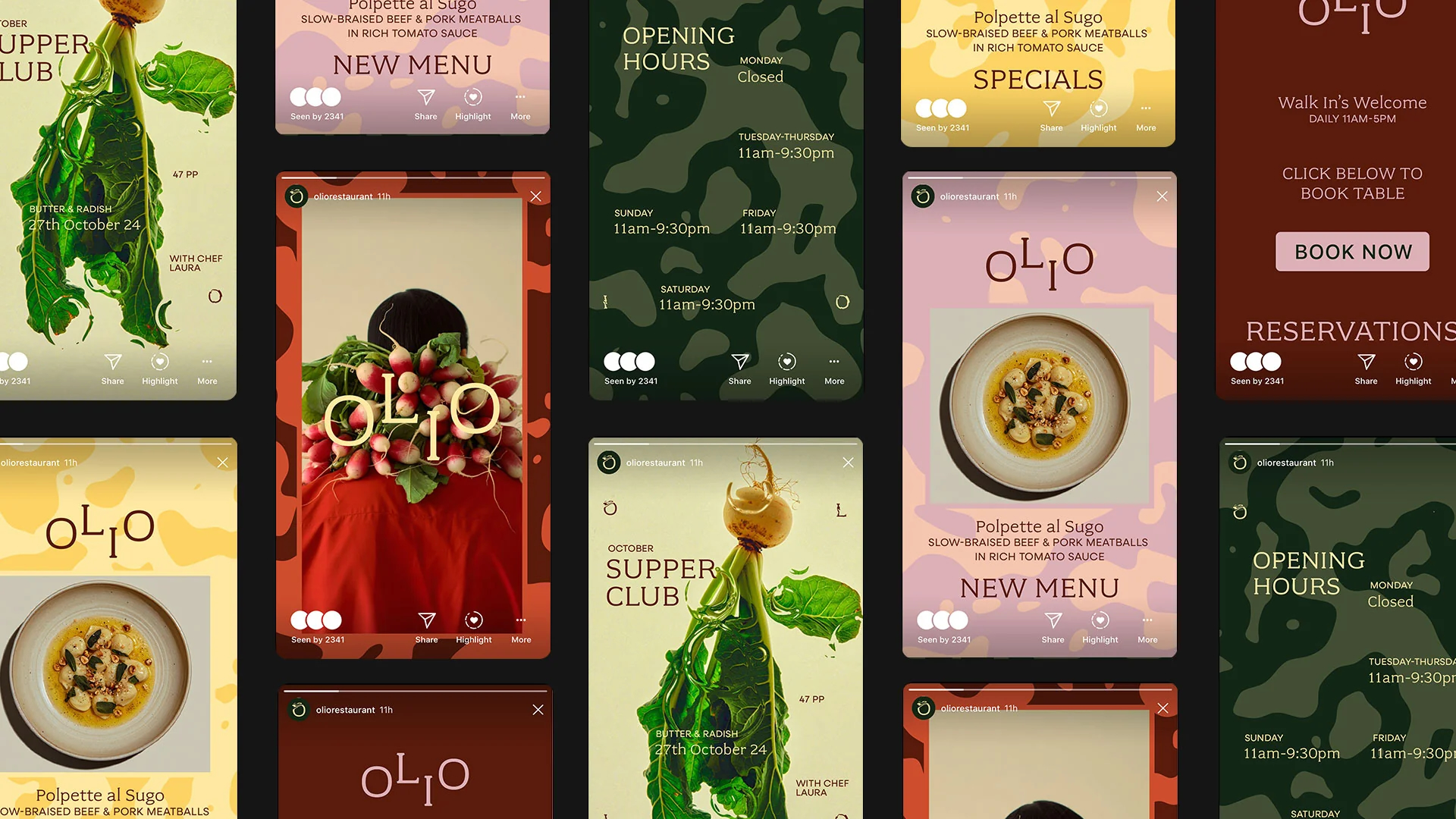 Warm, organic and quietly confident, Olio’s branding is designed to feel like part of the neighbourhood — a welcoming, modern classic with enduring charm.